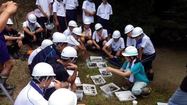 ![]() 途中、生物観察をしました。 |