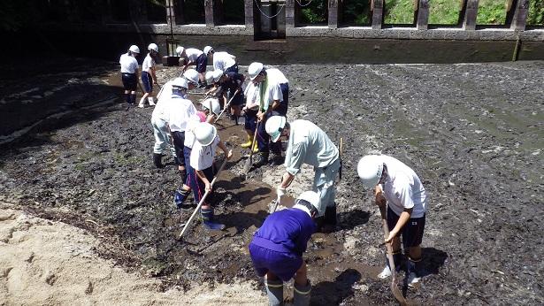 ![]() 力を合わせて砂出しをしました。 |