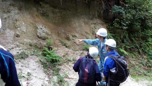 ![]() 古い地層の説明を受けています。 |