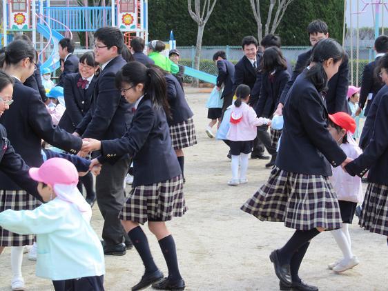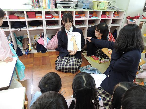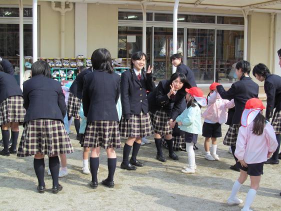 2月4日(月)にB・C組が、7日(木)にはA・D組が梅村幼稚園で保育体験をしました。家庭科の授業の一環で、幼児とのふれあいの中で自分の小さいころを思い出し、年代の違う相手のことを理解することを目的としています。生徒たちは授業で作成した手作り絵本を読んだり、一緒に話したりしてそれぞれの時間を楽しみました。生徒ののなかには梅村幼稚園出身者も多く、お世話になった先生方と久しぶりに出会うなど「里帰り」の機会ともなりました。