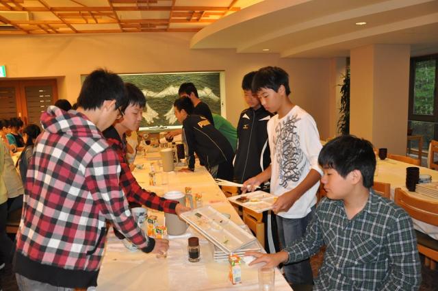 夜は恒例のお楽しみ行事「夕べの集い」です。創作科学部による発表&試食会(?)、演奏、ダンスなどの披露があり、大いに盛り上がりました。