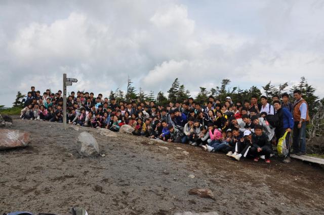 ![]() 山頂!学年全員で記念撮影です。 |