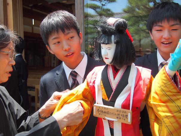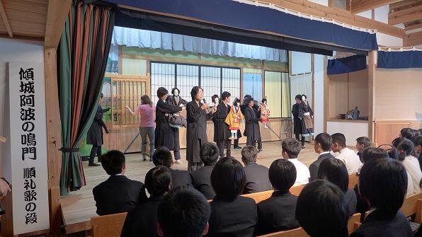 阿波十郎兵衛屋敷では、徳島地方で語り継がれている人形浄瑠璃の「傾城阿波の鳴門~巡礼歌の段」を1時間ほど鑑賞しました。限られた操作で人形があたかも生きているように見えることに驚き、見とれました。人形操作の体験もすることができました。