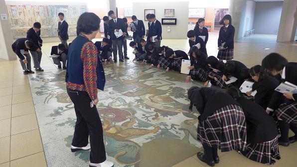 大塚美術館では、2000年以上色あせない陶板でできた名画を、ボランティアガイドの案内で鑑賞しました。聖堂やその壁画が実物大の大きさで再現され、写真では味わえない迫力を感じることができました。鑑賞時間が短かったのが心残りです。 これですべての研修を終え、バスで松阪に戻りました。