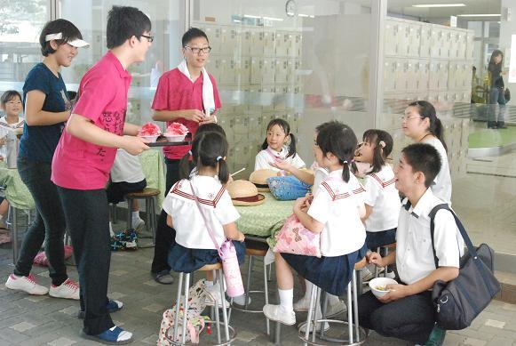 ![]() 梅村幼稚園の園児を招待-6年生がかき氷をごちそう |
