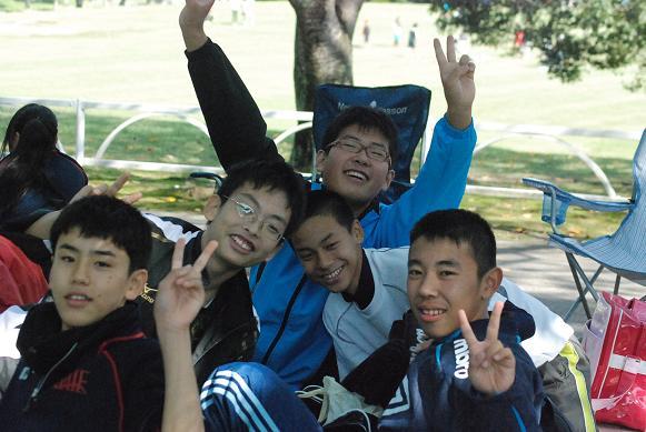 ![]() 応援に来てくれた生徒とともに |