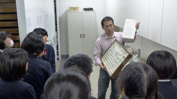 愛媛大学では、野見山桂先生の環境ホルモンに関する講義のあと、-25℃の冷凍保存室の体験や研究室の見学がありました。その後吉田広先生のガイドでミュージアム見学を行いました。一般では見られない貴重な標本を見るバックヤードツアーの機会も設けていただきました。