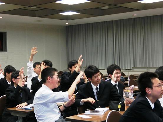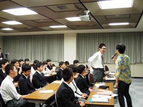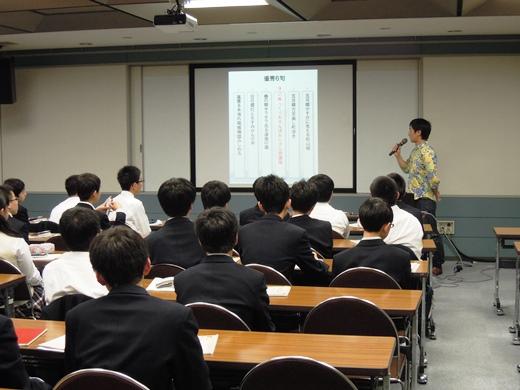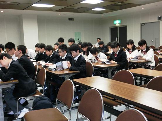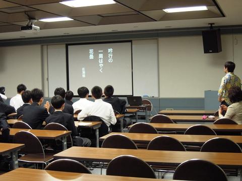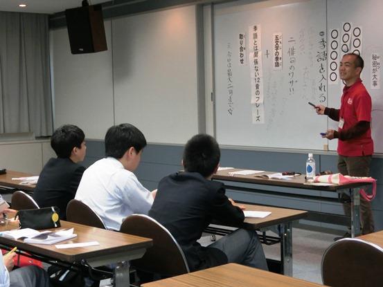 「吟行」コースでは、俳句の作り方について講義を受けた後、実際に子規記念博物館の周辺を歩いて俳句のタネを拾い、博物館に帰ってから、そのタネをもとに俳句を作成しました。 その後の「句会ライブ」では、実際に俳句甲子園で司会をしている方の司会で生徒が作成した俳句をテーマ別に6つのグループに分けて鑑賞しました。司会の方の説明を受けながら友達の作成した俳句を鑑賞することで、活発に意見や感想の交換をすることができ、楽しいひと時を過ごすことができました。生徒によって選ばれた上位6作品には賞品が贈られました。その後、博物館の竹田館長から「正岡子規と夏目漱石の交流」という題で講義をしていただきました。子規と漱石の文学に対する考え方や二人の固い友情について深く知ることができ、とても勉強になりました。
