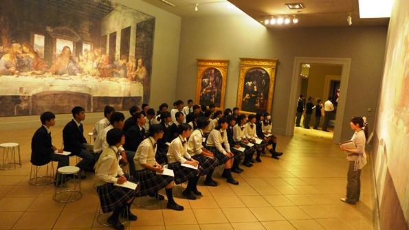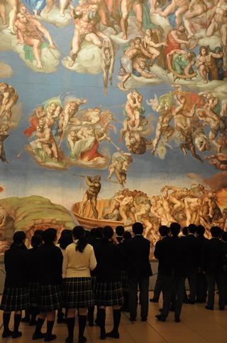 研修旅行の最後を飾るのは、大塚国際美術館での名画鑑賞。学芸員の皆さんによるツアーガイドを楽しみました。陶板で複製した実物大の古今の名画は、その迫力に圧倒されました。特にシスティーナ礼拝堂など実物大の建物の内部に再現された天井画・壁画は圧巻でした。