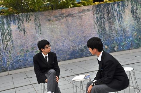![]() モネの「水連」の壁画の前で |