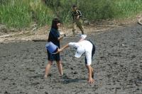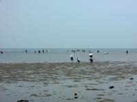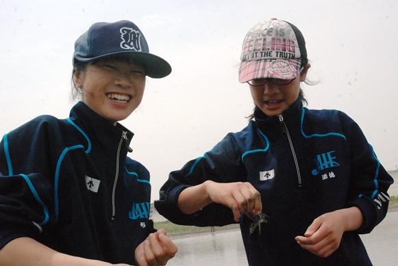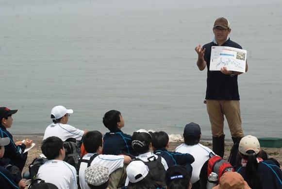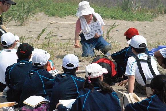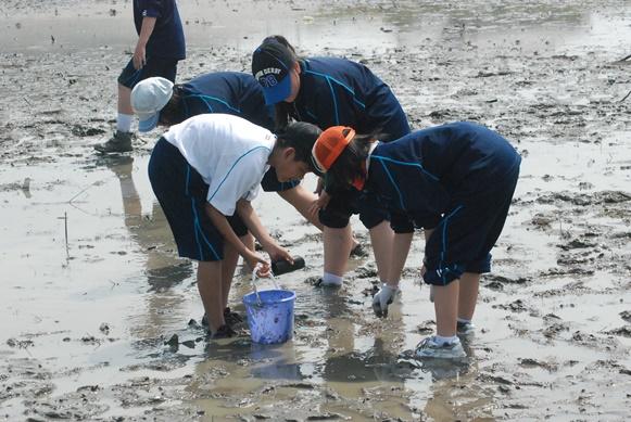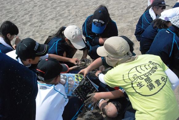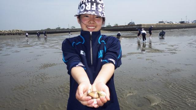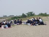 全国でも有数の干潟を有する松名瀬海岸でのフィールドワークは6年目を迎え、体験を通して学ぶという三重中の学習の柱の一つとなっています。 当日は季節外れの高温が予想されましたが、心地よい海風のおかげで、気持ちよく研修することができました。