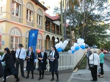 Brisbane Girls’ Grammar Schoolはブリスベンを見下ろす高台、Spring Hillsの一角にあります。8月1日はOpen Dayでした。生徒は授業での取り組みを発表したり、寄付を募ったりします。保護者は軽食の屋台を準備します。卒業生や保護者、入学を希望する人たちがたくさん集まり、賑やかでした。日本語学習を紹介するコーナーには三重高校のペナントが飾られ、交換留学の写真も掲示されていました。