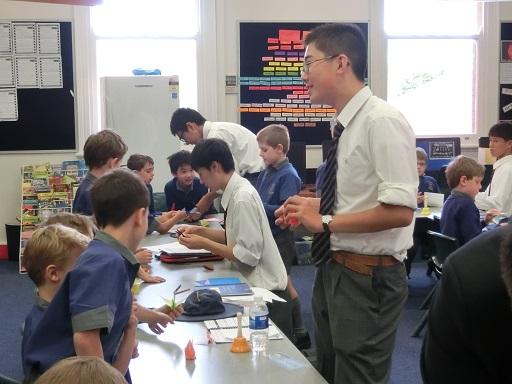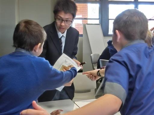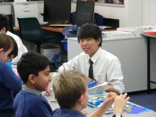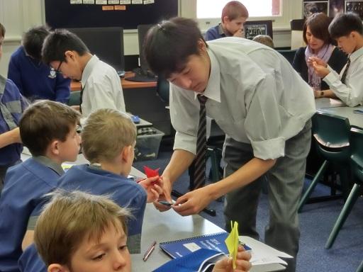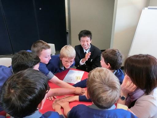 Churchieでは小学校から日本語教育に力を入れています。日本から元気な生徒たちがやってきたと聞いた先生から「ぜひ小学校に来て、日本語の授業を手伝ってほしい」と依頼がありました。留学生が訪問することが少ない小学校では子供たちが大歓迎してくれました。日本のお兄さんたちと、あいうえおカードや折り紙をするのが楽しみでしかたがありません。お昼休みも一緒に遊びたくて、お兄さんたちがランチを食べている横で「まだぁ?早く食べてよ」と言いたげな顔で待っていました。こんなに楽しみにされるとは思ってもいませんでした。