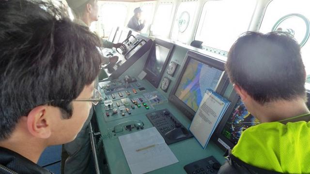 ![]() 勢水丸の操舵室を見学 |