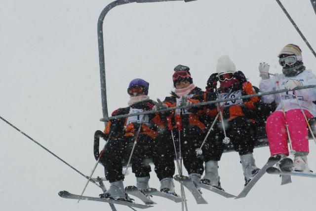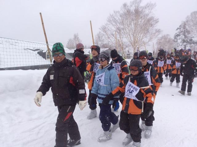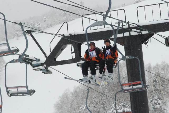 曇り、氷点下8度。最高の雪質の中、生徒たちは頑張りました。初心者もすぐに上達し、午前中には、すべての班がリフトに乗ることができました。午後の練習の最初に、インストラクターによるデモンストレーション滑走を見せていただき、その後、班別の練習。上級者コースに出かけた班や、林間コースを滑った班もありました。