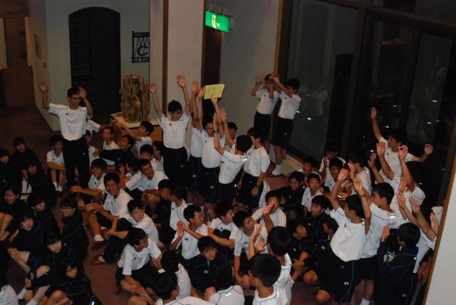 夕べの集いでは合唱やクイズなど,趣向を凝らした出し物で大いに盛り上がりました。