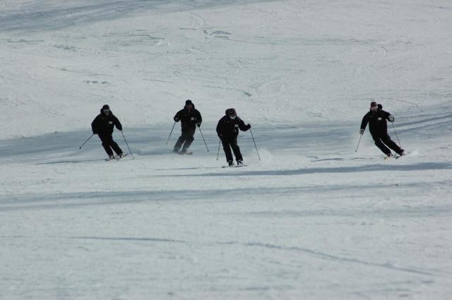 午後の講習開始前には、インストラクターの先生方のデモンストレーションを見せていただきました。先生方の華麗な滑降にみんな見入っていました。
