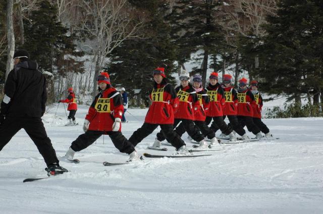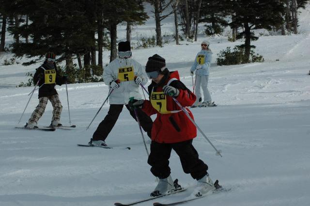 午後の講習開始前には、インストラクターの先生方のデモンストレーションを見せていただきました。先生方の華麗な滑降にみんな見入っていました。