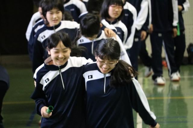 平成28年4月13日~14日、オリエンテーション宿泊研修が行われました。1日目は昼食から始まりました。友達とレジャーシートを寄せ合って、お弁当を楽しく食べました。その後、入所式、開校式がありました。中学校長先生から「命」のお話をいただき、生徒は集中して聴いていました。その後、集団行動、校歌練習がありました。一生懸命練習し、覚えたての校歌をクラス毎に発表しました。夕食・入浴後に教頭先生の講話を聴き、その後、クラスミーティングを経てクラスの団結力を高めました。2日目は、起床後に皆でラジオ体操を行い、気持ちのいい一日のスタートとなりました。朝食後、クラス対抗でスポーツレクリエーションを行い、大いに盛り上がりました。いろいろな種目に挑戦し、心をひとつにして頑張ることができました。レクリエーションを通して、学年全体で親睦を深めることができました。閉校式、写真撮影、昼食の後、バスで三重中学校へと無事帰着しました。