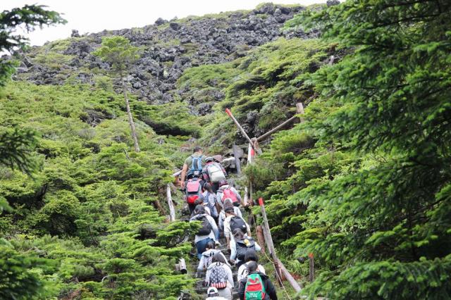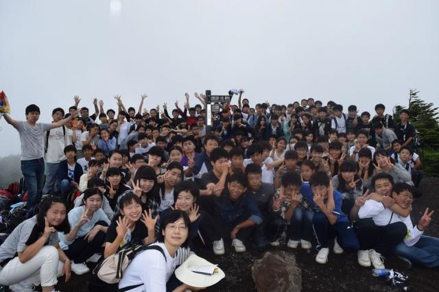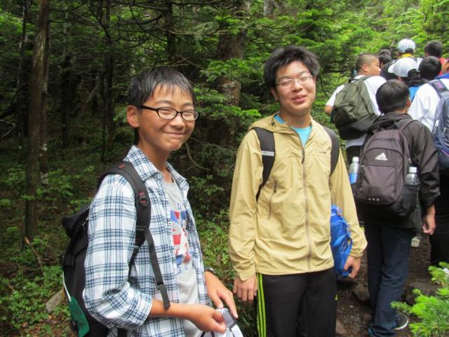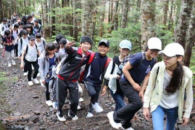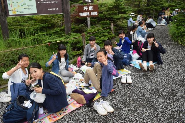 最終日は、出発前に閉校式を行った後、北横岳登山に向かいました。ロープウェイで坪庭まで上がり、様々な植物観察をしながら坪庭を通り、北横岳までの登山道を上りました。途中、クラス全員で声を合わせ「やまびこ」をやってみました。急な登山道も互いに励まし合い山頂に到着した時、全員達成感でいっぱいでした。