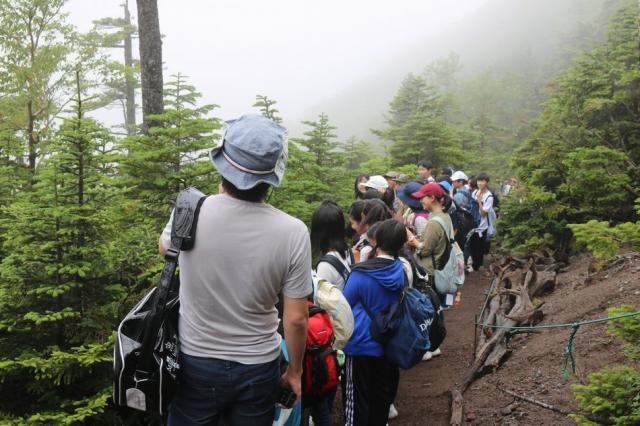 中学2年生が7月25日(月)から2泊3日の夏季合宿を長野県で行いました。蓼科高原にある中京大学蓼科セミナーハウスを拠点に、雨により一部予定を変更しましたが、信州の自然や歴史に触れることが出来ました。最終日の登山では互いに励まし合い山頂まで辿りつくことができました。