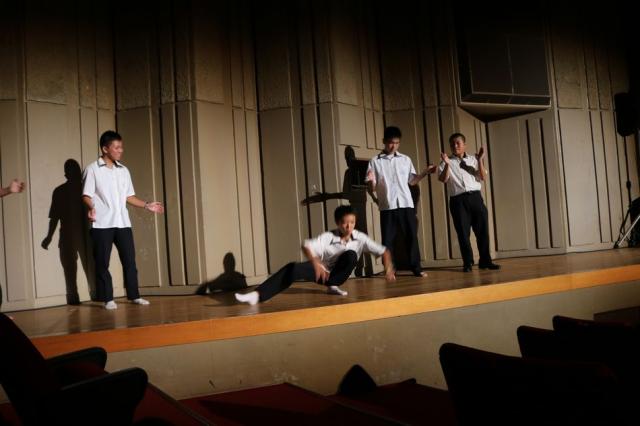 中学行事(舞台発表)は、クラブによる発表、学年による演劇やダンス、合唱などのパフォーマンスを楽しみました。オープニングでは、毎年、生徒会メンバーが工夫をこらした企画をします。今年は、校内やいろいろな生徒をコマ撮りし、まるで音楽PVのような映像で会場を盛り上げてくれました。また、生徒会長自らパフォーマンスを披露しました。