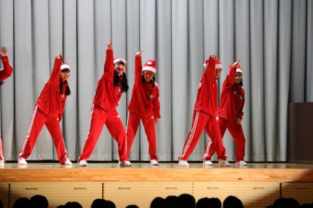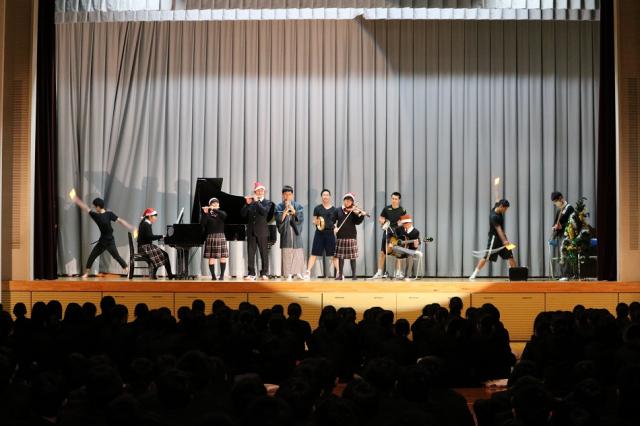 12月22日(金)、第2学期終業式と恒例の生徒会によるクリスマスコンサートが行われました。校長訓辞の後、校歌斉唱があり、美しい歌声が体育館をつつみました。
