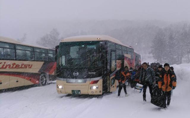 松阪を出発し、道路状況が心配されましたが、予定通りに到着しました。移動のバスの中では、各クラスがレクレーション係の企画で楽しく盛り上がっていました。また、長野県に入ってからは、雪景色を眺めながら楽しむなど、の約8時間移動がとても短く感じられました。