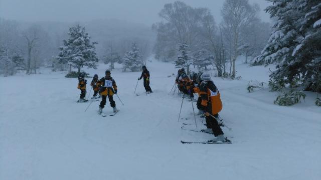 2日目から、いよいよスキー練習開始です。開会式の後、インストラクターの先生について、ゲレンデに向かいました。各自の技能に合せて分かれ、初心者は基本からしっかりと教えていただきました。天候が心配されましたが、風がほとんどなく、雪も少なくなったので、練習をしっかりすることができました。