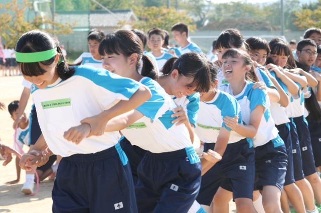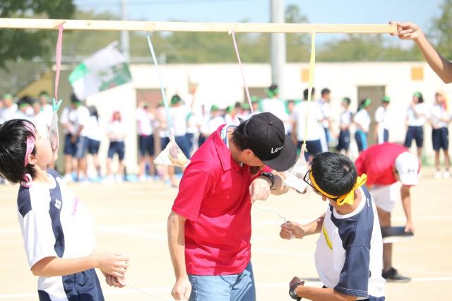 中学生と高校生が縦割りで4ブロックに分かれ、リレーや綱引きでは学年の垣根を越えて共に競技に取り組みました。1〜6年生皆でつくった応援旗を振っている姿や自分が出ない時もチームを精一杯応援している姿が見られました。プログラムの中盤では、学校に隣接する生活介護事業所「向野園」の皆さんと玉入れやクッキー食い競争などを共に楽しみました。そしてお互いの健闘を称え、記念樹の交換をしました。なお、向野園さんのパンは校内でも販売され、その本格的な味は生徒に大好評です。