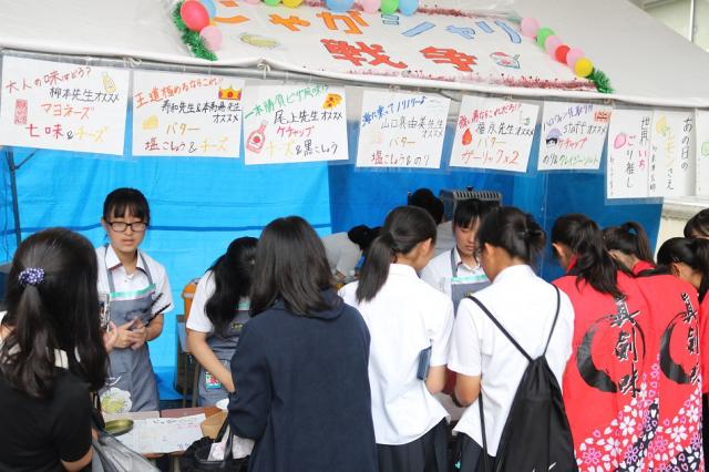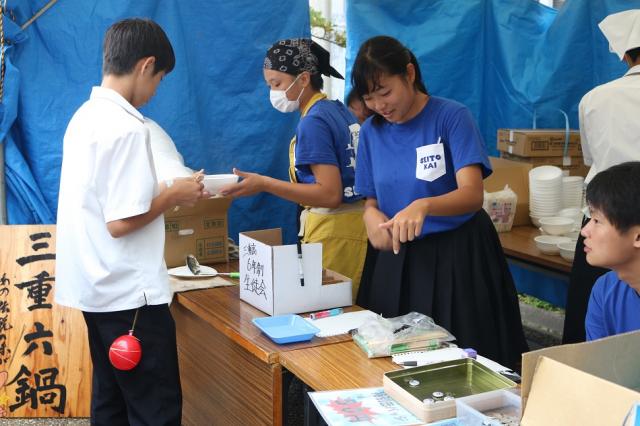 翠巒祭4日目は、学園祭。展示・発表・模擬店などが中高合同で行われました。昨年に引き続き、英語劇や模擬店など、バラエティーに富んだものとなりました。各教室には、理科の自由研究や点描画、社会科の新聞、玄関には文芸大会の作品や華道部の作品などが展示されました。また、茶道部はお茶でおもてなし、科学技術部はキーホルダー作りや活動報告の展示をしていました。舞台発表では、三重中ソーラン、三重中ダンス部が圧巻の演技を披露しました。
