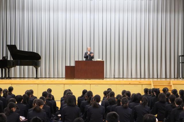 12月22日(土)、第2学期終業式と恒例の生徒会によるクリスマスコンサートが行われました。校長訓辞の後、校歌斉唱があり、美しい歌声が体育館をつつみました。