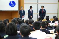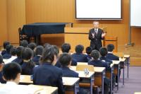 4月30日(木)に、1年生を対象に交通安全教室が開かれました。松阪市は交通事故が多く、日頃から登下校時の安全には気をつけるように話をしていますが、この日は、松和自動車学校の検定員の方々をお招きして、具体的な事例を挙げて説明をしていただきました。中学生が関係するの事故のうち、自転車での事故が目立つことや、頭部にけがをする割合が多いことなどの話があり、生徒は驚いた様子でした。事故に遭わないための自転車走行の話もありました。今後は注意点を守り、より安全な登下校を心がけたいと思います。