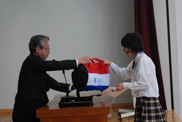 体操服ロゴマーク・コンペティションの表彰で記念品が贈呈されました。 |