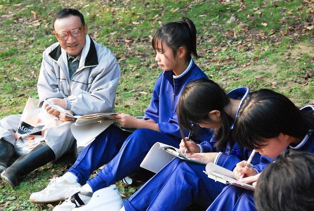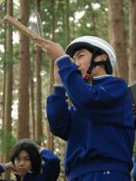 11月9日(月) 2年生C組の理科特別授業『森の健康診断』野外実習が行われました。全4クラス中3クラス目です。バスで到着した生徒たちは「矢作川水系森林ボランティア協議会」の方々に率いられ、約7名ずつの班に分かれて森に入り、植生や混み具合に関する調査を、森林公園付近の人工林を使って行いました。