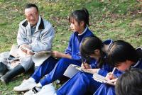 森林ボランティアの方々に測定した結果の分析を教わります。 |