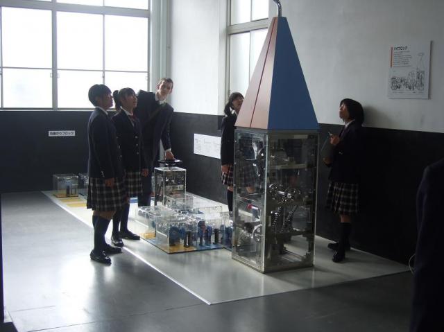 トヨタテクノミュージアムでは、糸車の時代から大量生産の現代に至るまで、織機、自動織機について学びました。実際に稼動する自動織機を見ながら聞く係員の丁寧な説には臨場感があり、大変興味深いものでした。
