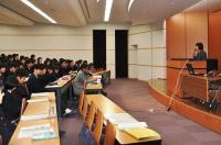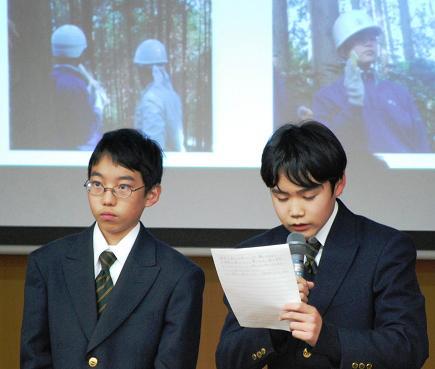 2月12日(金)2年生理科特別授業「森の健康診断」の研究発表会がベルホールで開かれました。野外実習でとったデータを、生徒自身の手でコンピュータに打ち込み、それを元に森の「健康」を分析しました。そしてそこから分かったことや考えたことを生徒自身の手で原稿にまとめ、今回発表しました。