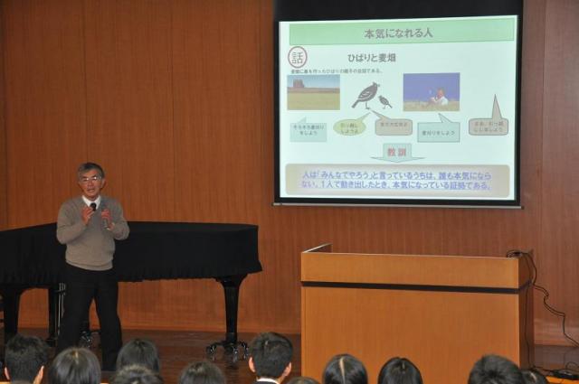 2月20日(土) 3年生でHRの時間に三重中高の中澤学監による特別授業がありました。いろんなトピックスに関しての逸話や格言、名言をいろんなイラストを駆使しながら説明していただき、高校部進学を控えて、将来の進路について考える機会となりました。