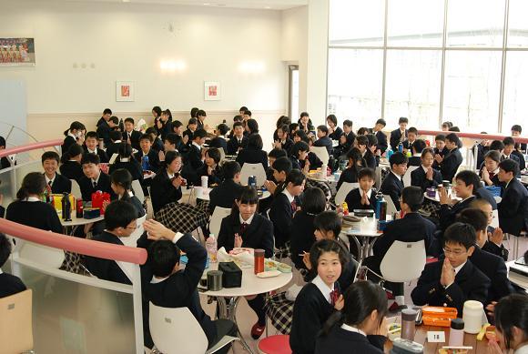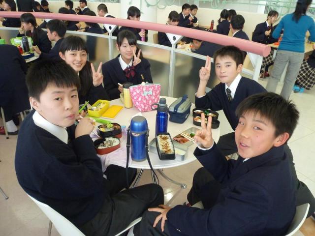 3月15日(月)に家庭科の課題『お弁当を作ろう!』を実施しました。朝早く起きて自分でお弁当を作り、家族の支えを知るという課題です。各自が手作り弁当を持ちよって、4限目にディスコランテで食事会を開きました。いつもより30分以上早く起きて作ったお弁当は,どれもおいしそうなものばかりでした。どのお弁当も彩りが考えられていたり、栄養バランスを良くするために野菜が入っていたりと工夫して作られていました。くじ引きで決まったテーブルに座り、いつもと違う雰囲気の中で摂った食事は、特別な食事会となりました。