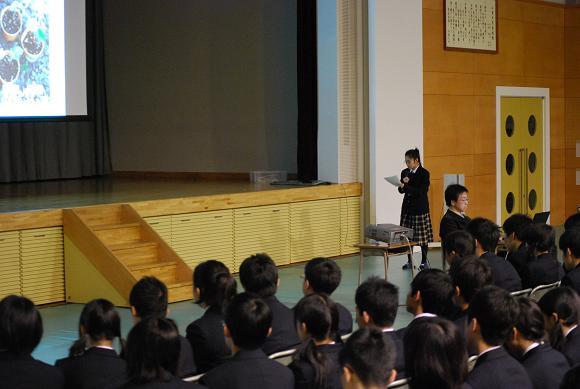 発表を聞いた生徒たちはそのレベルの高さに驚いていました。1・2年生は来年度の夏休みの自由研究、3年生は今後の探求学習の参考になったと思います。