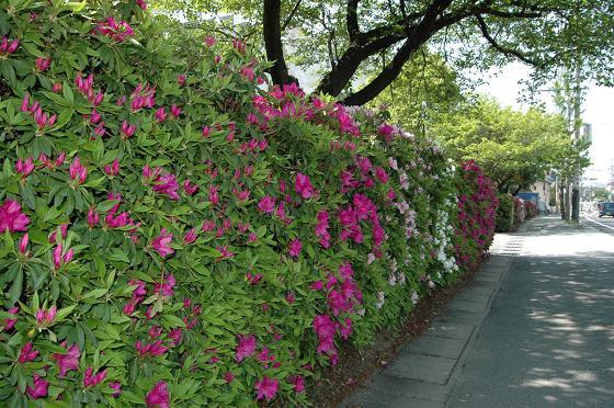 4月の入学式のときの桜に代わって、5月はツツジの季節です。キャンパスは赤と白のツツジで彩られます。三重高通り沿いが最も鮮やかです。