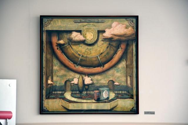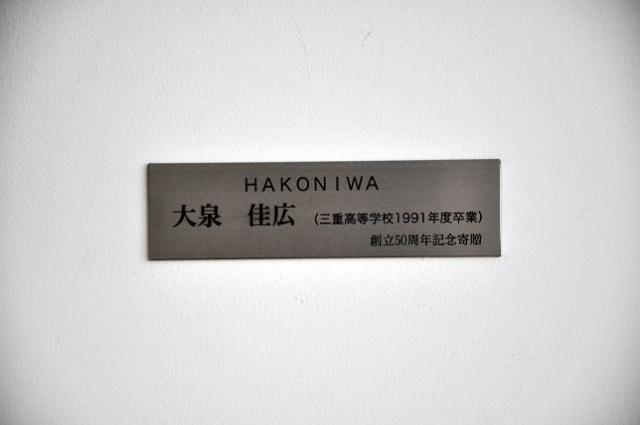 創立50周年を記念して、6年制の卒業生(1991年度高校卒)の大泉佳広さんから絵画を寄贈していただきました。大泉さんは洋画で活躍され、現在宮崎大学准教授として教育に携わってみえます。この1月から2月にかけて松阪市文化財センターで個展があり、そこで展示された作品の一つを寄贈していただいたものです。100号の大作で、カフェテリア「ディスコランテ」の壁面に設置されました。来校の際には是非ご覧ください。