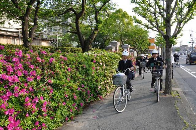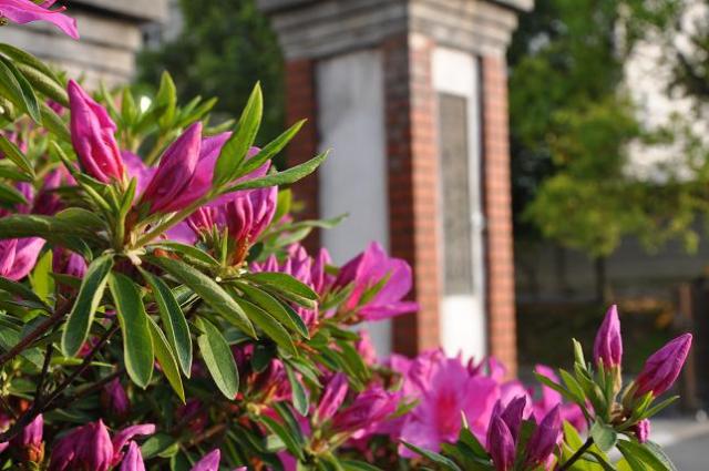 校舎を囲んでいるツツジが咲き始めました。もうしばらくで「三重高通り」の1号館と5号館沿いを彩ることになります。前を通られる機会がありましたら、是非ご覧ください。