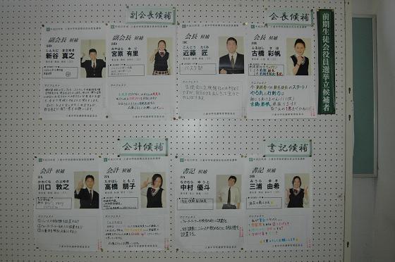 5月2日(金) 生徒会役員選挙が行われました。顔写真の入ったマニフェストが各階に掲示され、今日、立会演説会のあと、学年毎に設けられた投票所で投票が行われました。即日開票のあと、連休明けに結果が発表されます。