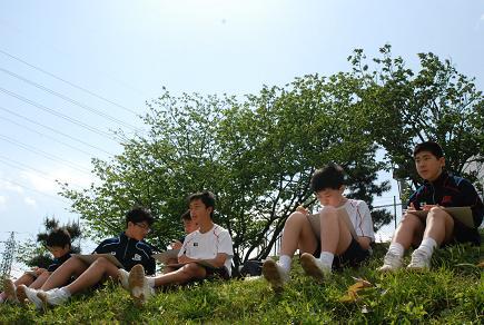 5月12日(水) 全学年による恒例の写生大会が行われました。今年のテーマは『新しい発見を描く』。風のある少し肌寒い天気となりましたが、広いキャンパスいっぱいに広がり、一日をかけて製作に励みました。