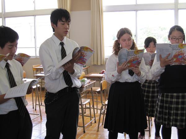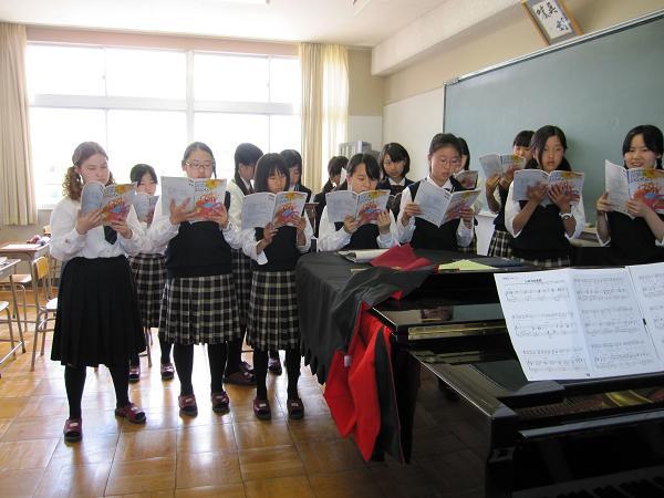 三重高校ではAFSの交換留学生として、今年はドイツからの女子生徒が学んでいます。ジェニファー・ミミッツさんで、6年制高校部の5年生に在籍しており、音楽の授業は中学生と一緒に受けています。