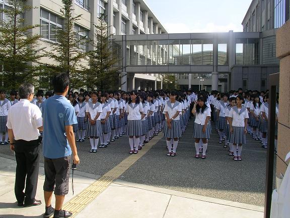 8月31日(火)朝、地震を想定した避難訓練が行われました。決められた避難経路を通って中庭へ。訓練とはいえ、一瞬の緊張感が走りました。
