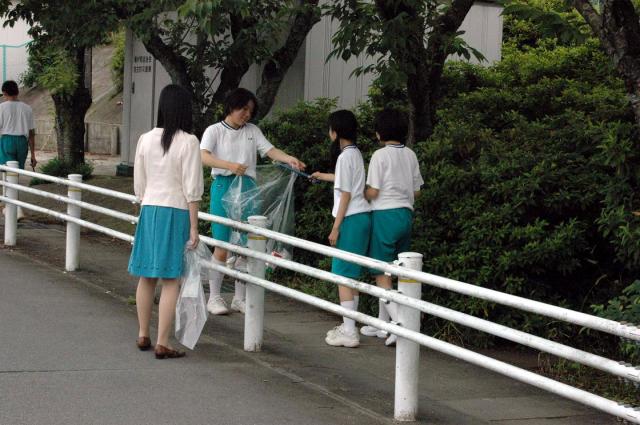 6月19日(木)の6限目、道徳の時間を利用して、2年生の学年全体で校舎周辺の清掃活動を行いました。日頃お世話になっている地域への感謝の気持ちを込めて、道路を中心にゴミを拾い集めました。