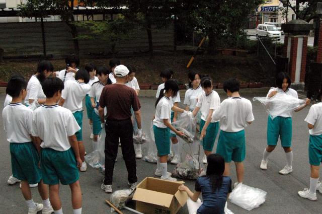 班で協力し、楽しそうに集合時間ギリギリまでゴミ拾いに熱中している姿がたいへん印象的でした。細かなゴミも残さず拾い集め、どの班も袋にいっぱい集めることができました。有意義な時間を過ごせたとともに、環境への意識を高めるよい機会となりました。